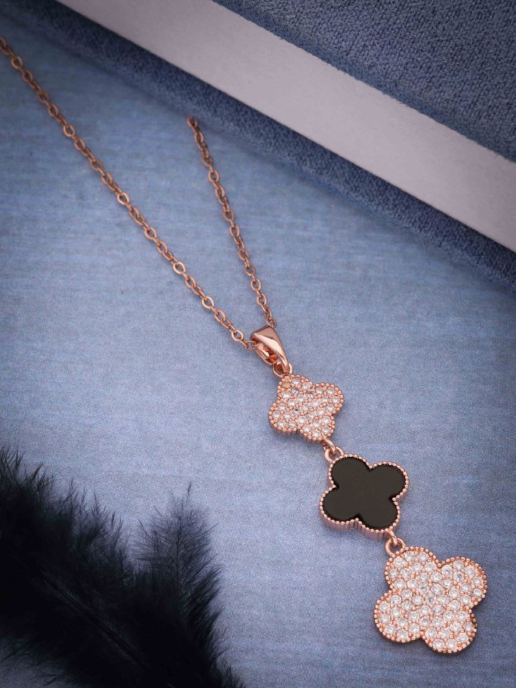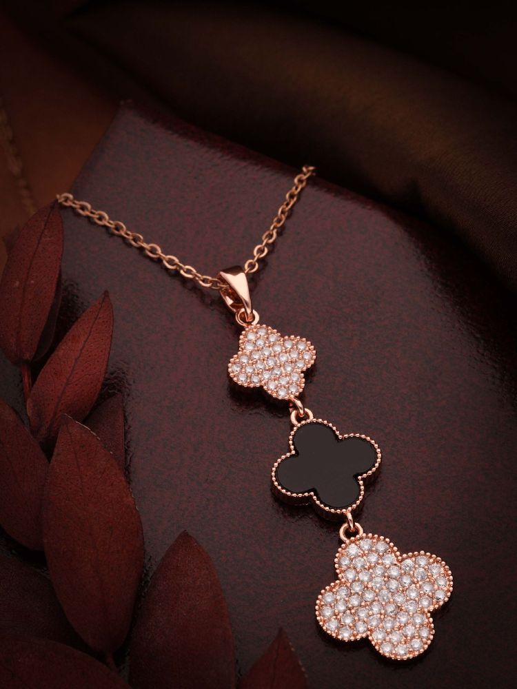 The elegance pendant chain have been crafted in Rose gold with classic intricate motifs, to bring the beauty of this classic stone cluster. This pendant has intricate cubic zirconia stone setting that go perfectly with your everyday wear.