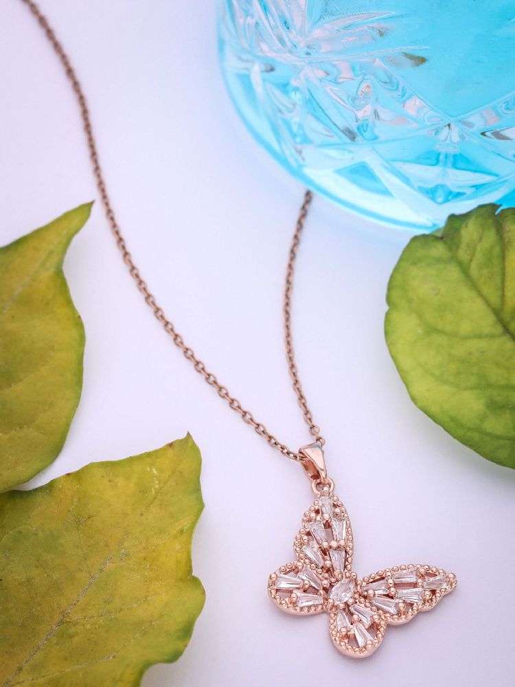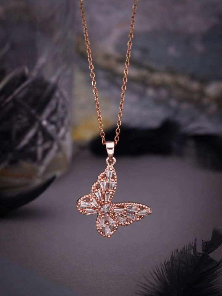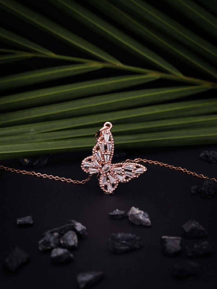 The elegance of Butterfly have been crafted in Rose gold with classic intricate motifs, to bring the beauty of this classic stone cluster. This pendant has intricate cubic zirconia stone setting that go perfectly with your everyday wear.