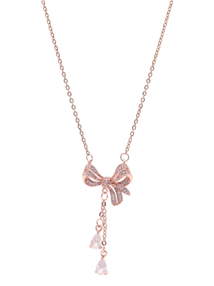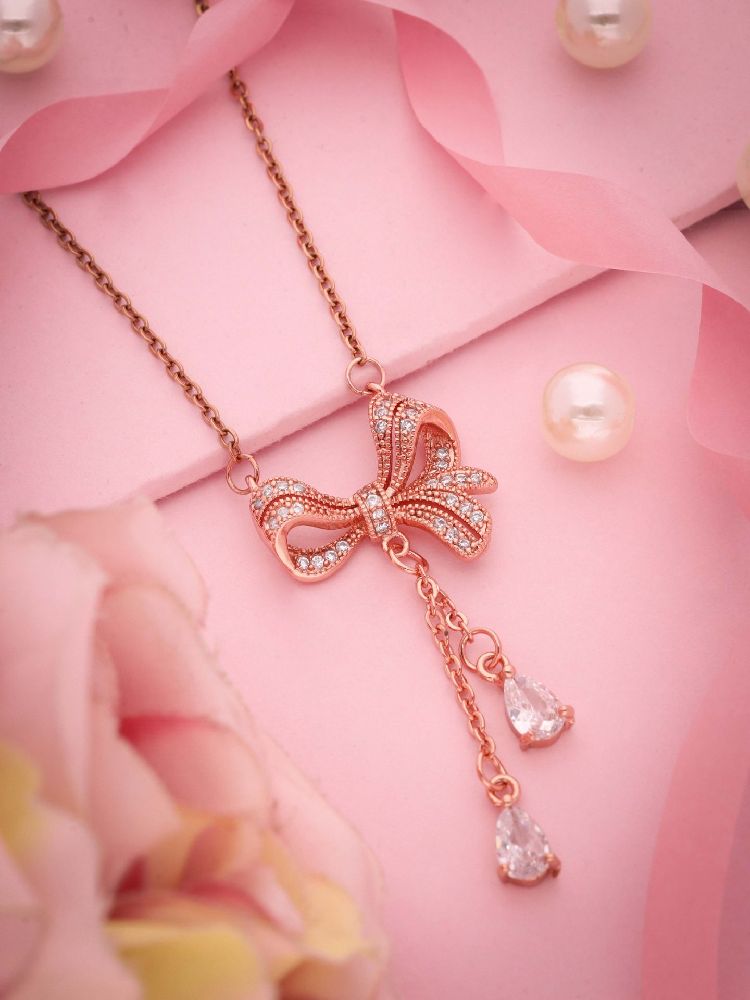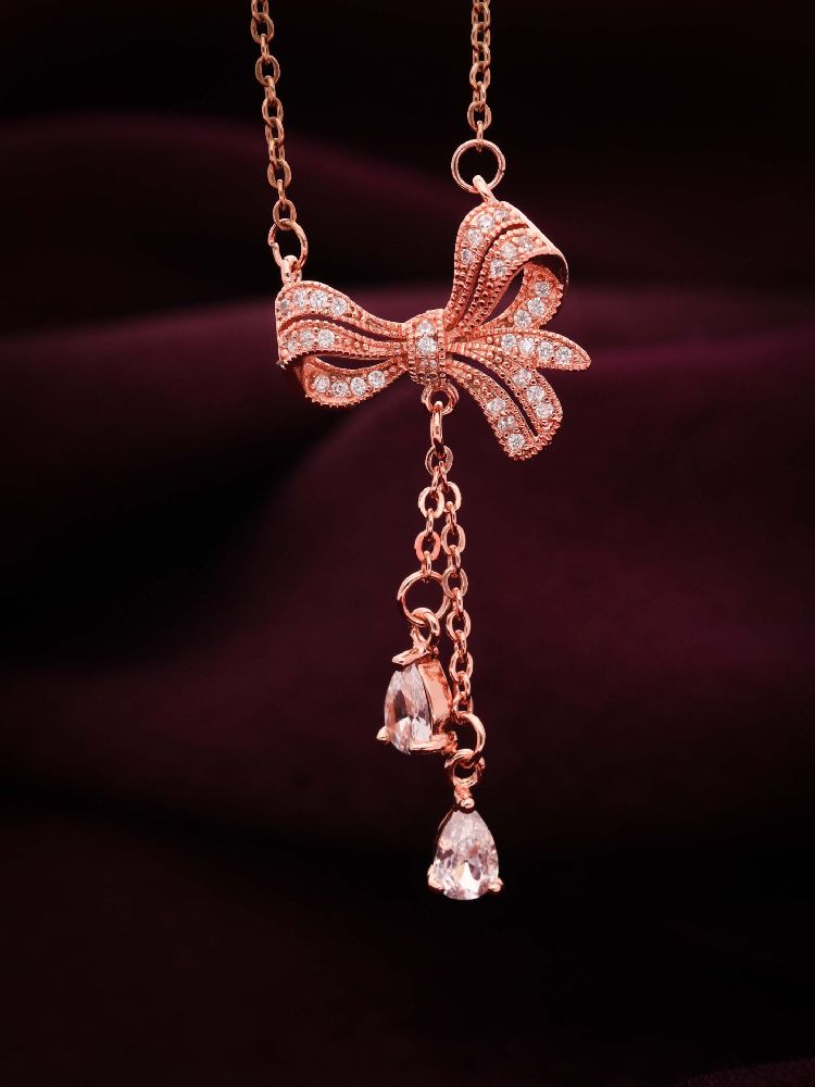 The elegance Elite Bow pendant chain have been crafted in Rose gold with classic intricate motifs, to bring the beauty of this classic stone cluster. This pendant has intricate cubic zirconia stone setting that go perfectly with your everyday wear.