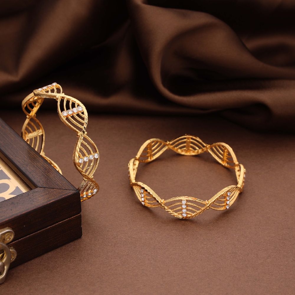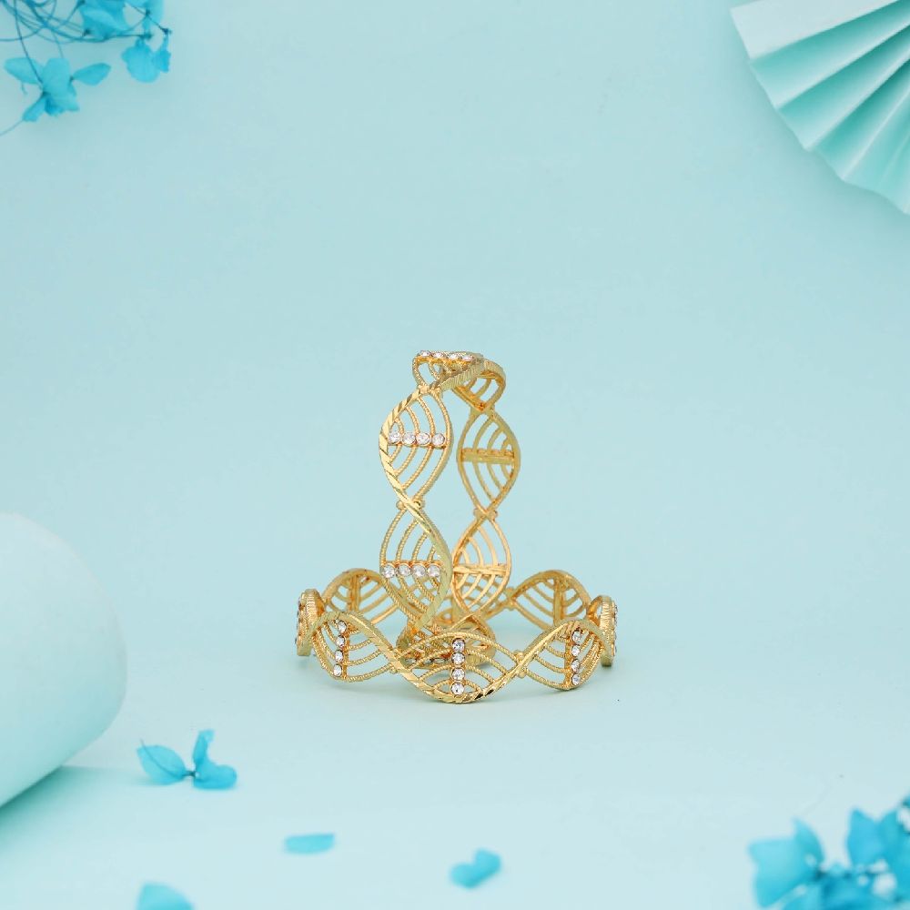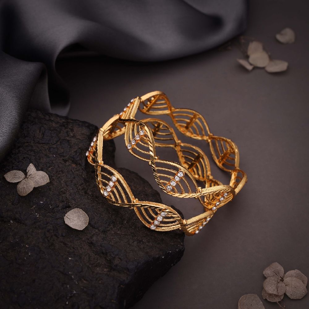 Gold and brass bangles are beautiful accessories that adorn the wrists, but they differ in their composition and appearance. This antique bangle is designed with love and craftsmanship. Bangle set consists of 2 bangles along with the Golden polish. Linked with gemstones, this ornament is a real treat for a stunner like you. The copper-alloy touch of the jewel exudes its timeless beauty and grace while reflecting your unique spirit. Style your ethnic outfit with this regal antique bangle and delight yourself in its luxurious charm. Their lustrous finish adds a touch of sophistication to any outfit, making them a favorite choice for special occasions .