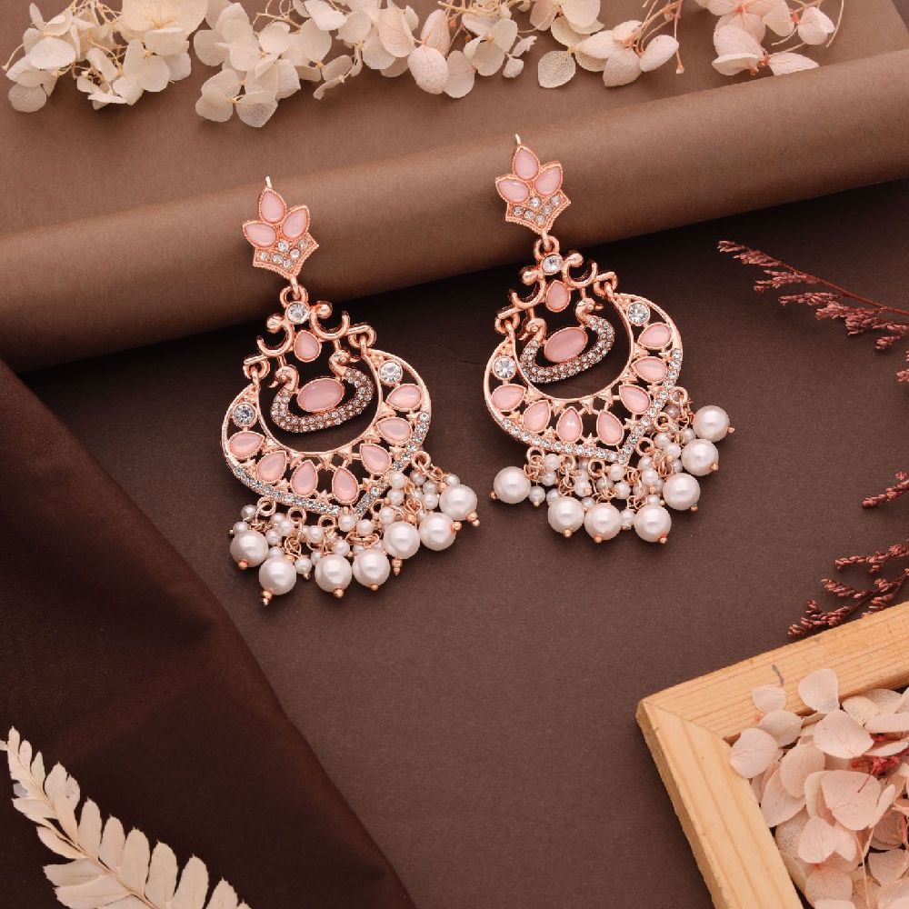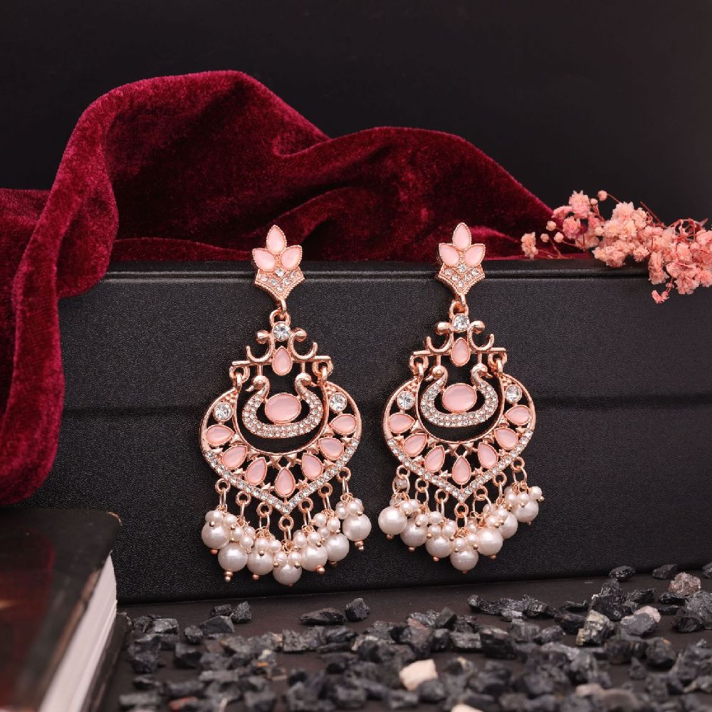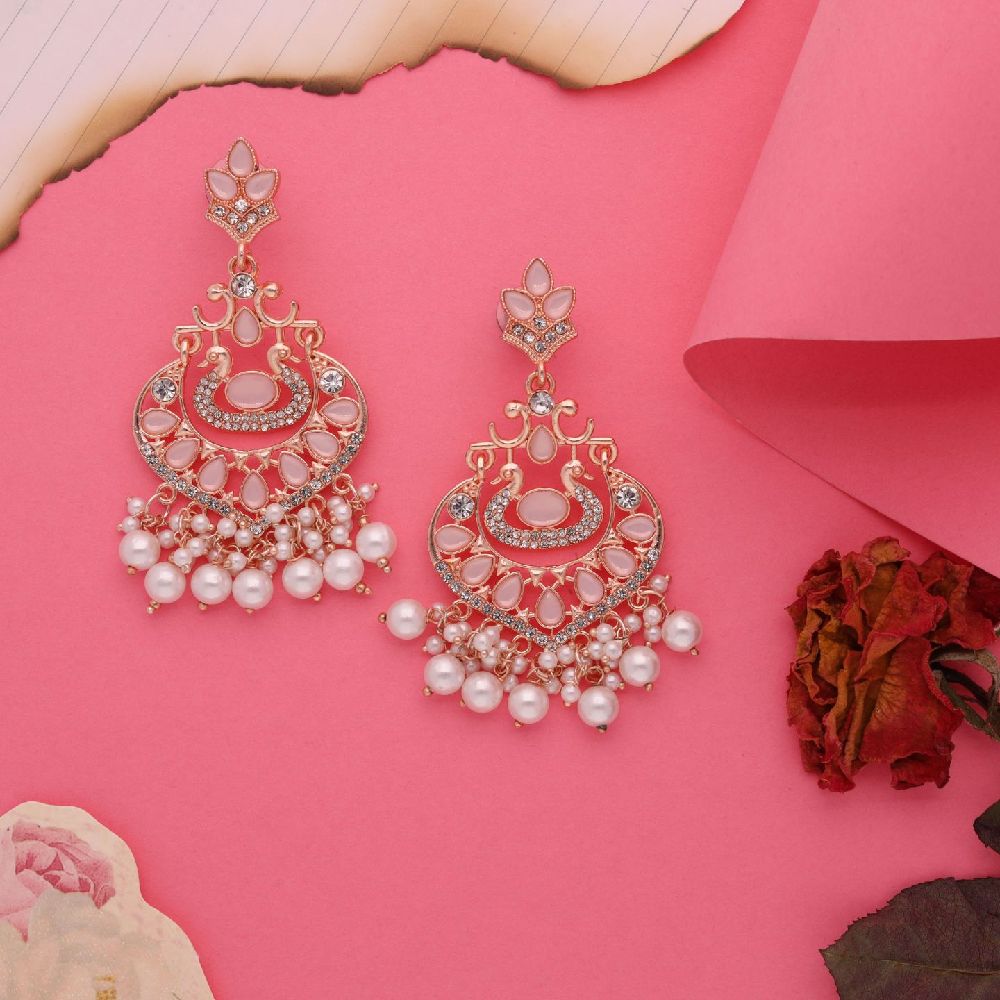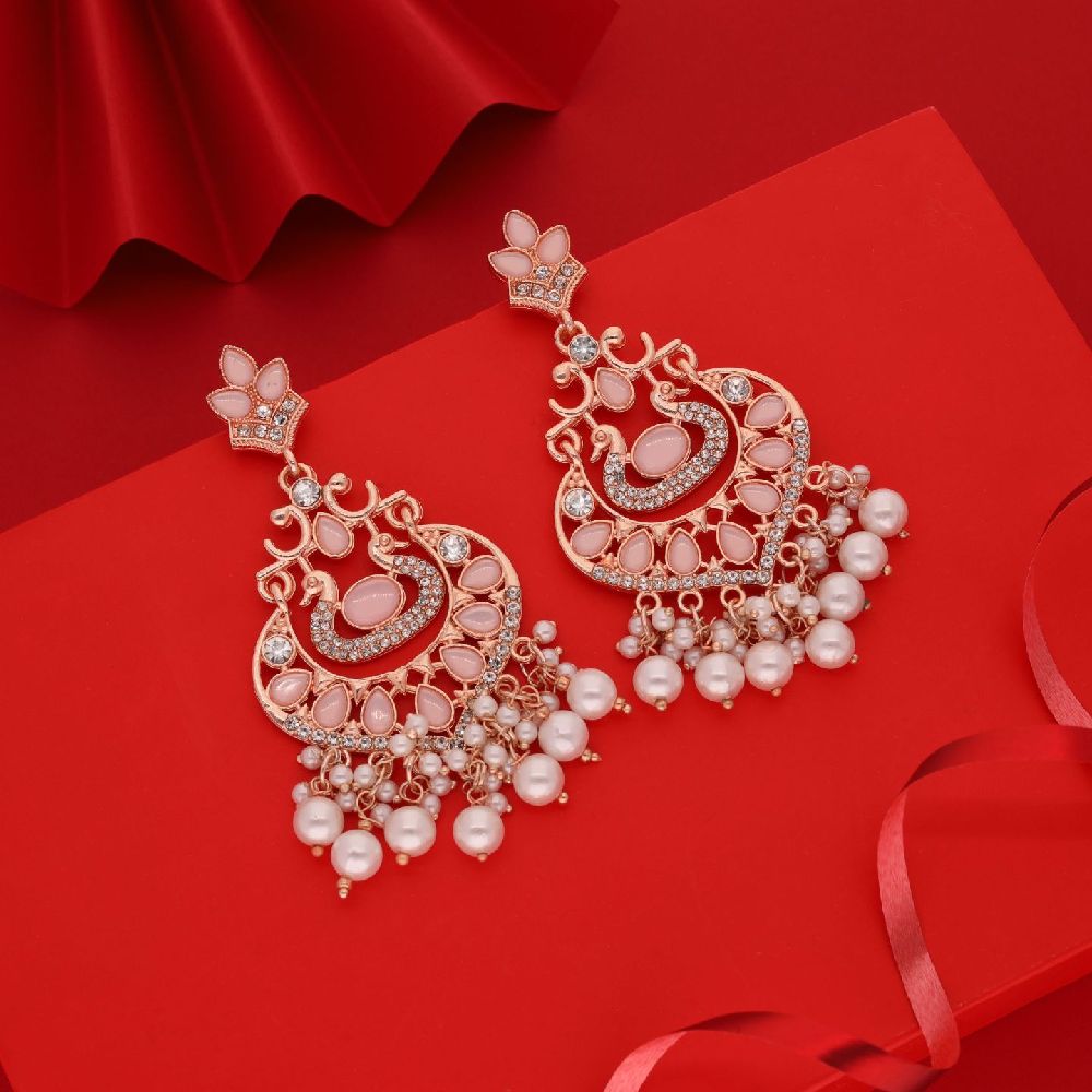 Introducing our exquisite Rosegold Tone White and Skyblue AD Studded Pearl Drop Earrings, a stunning fusion of elegance and grace. These earrings are meticulously crafted to exude sophistication, featuring a captivating blend of Rose gold tones complemented by the serene hues of white and Skyblue. The luminous pearls, delicately studded and suspended from the earrings, add a touch of timeless beauty and refinement to any ensemble.