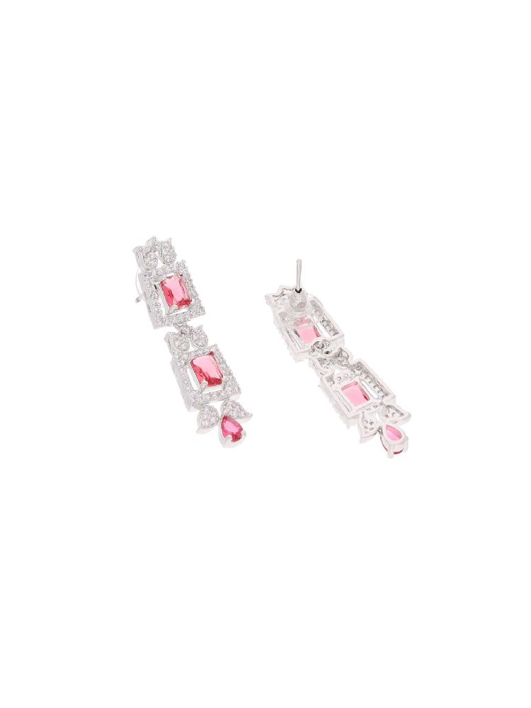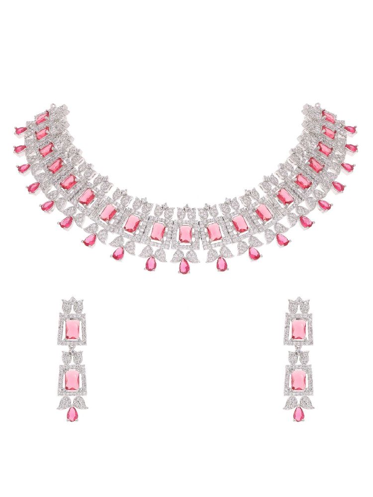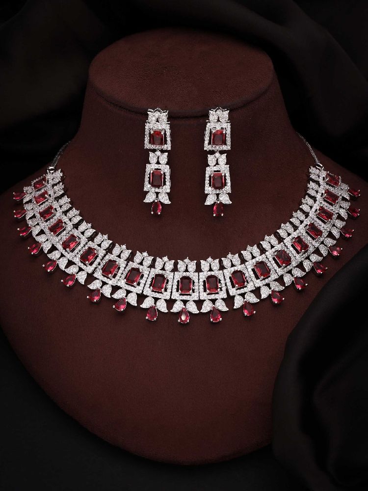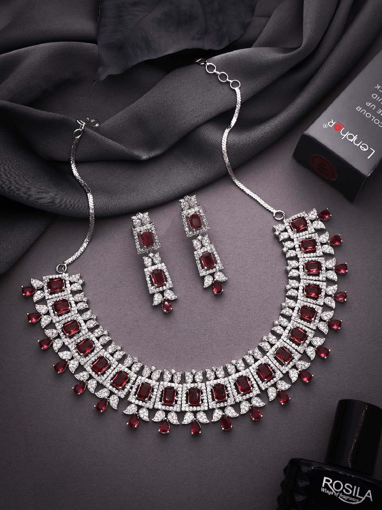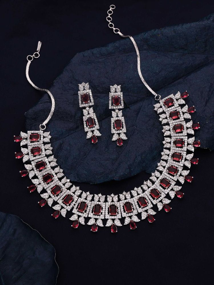 For a timelessly elegant jewelry piece that is sure to turn heads, Crafted with exquisite silver plating and featuring a captivating AD stone that is sure to bring a touch of glamour to your look, this necklace set makes a perfect accent piece that will last for years to come.